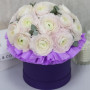 17 белых ранункулюсов в шляпной коробке в Новокузнецке
