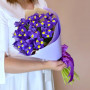 На фото букет из 19 фиолетовых ирисов. В составе: ирис 19 шт, дизайнерская упаковка 1 шт, атласная лента 1 шт, . Все цветы свежие и ароматные, букет красиво оформлен и отлично подходит для подарка. Доступна доставка цветов или самовывоз.