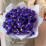 На фото букет из 25 синих ирисов. В составе: ирис 25 шт, дизайнерская упаковка 1 шт, атласная лента 1 шт, . Все цветы свежие и ароматные, букет красиво оформлен и отлично подходит для подарка. Доступна доставка цветов или самовывоз.