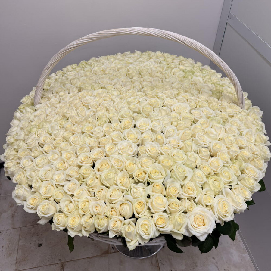 Букет из 501 белой розы в корзине «Нежность» в Новокузнецке