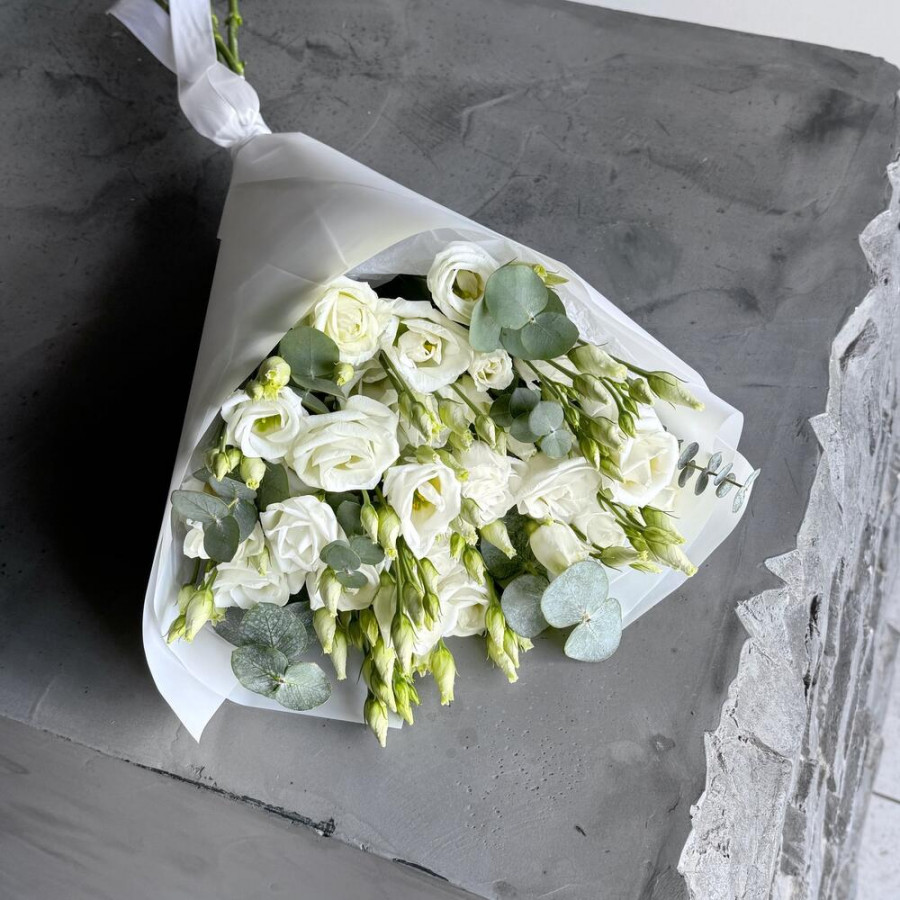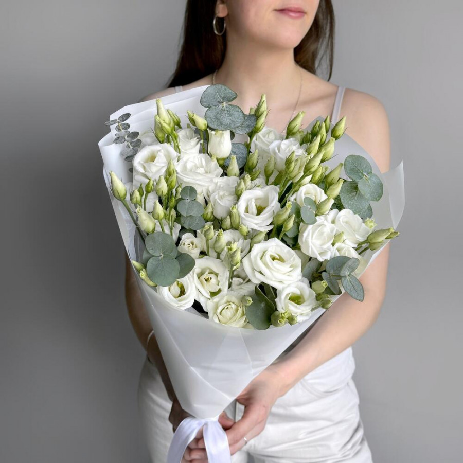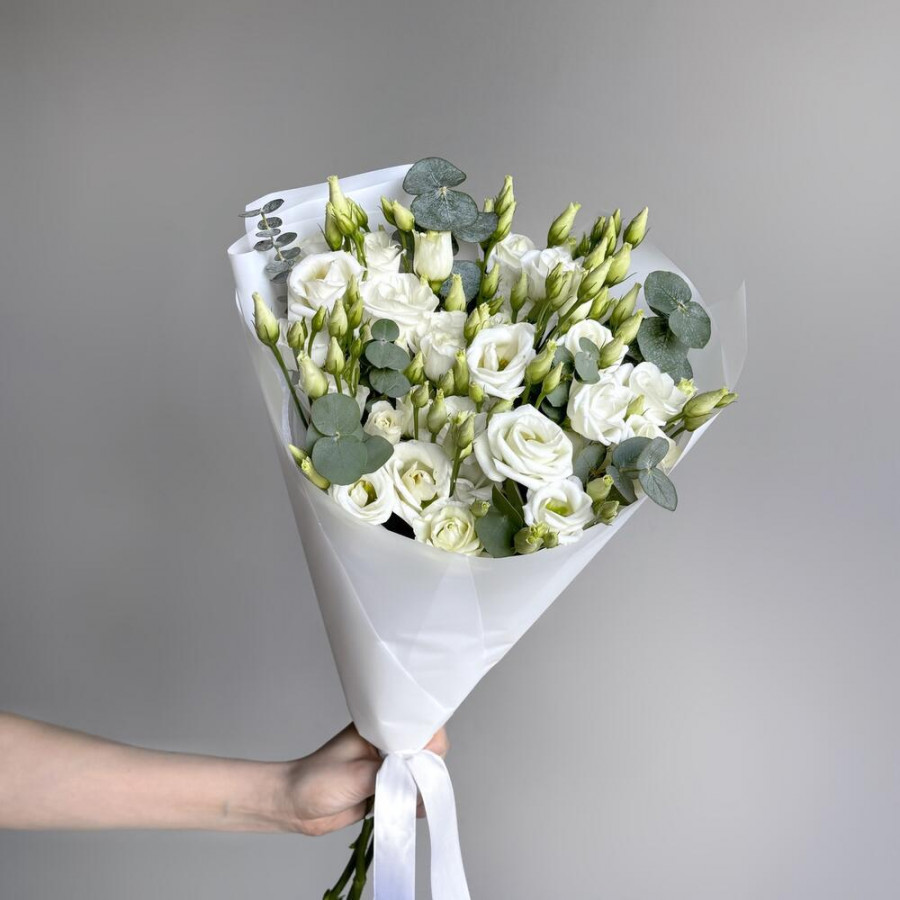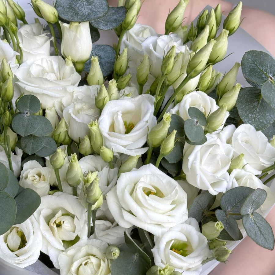 Букет из 7 белых эустом и эвкалипта в Новокузнецке