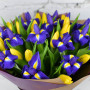 Букет из синих ирисов и желтых тюльпанов в Новокузнецке