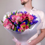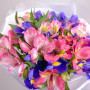 Букет из синих ирисов из розовых альстромерий в Новокузнецке