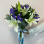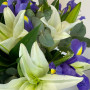 Букет из белых лилий с синими ирисами в Новокузнецке